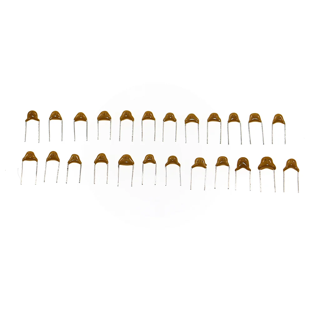 | 24 valeurs | 10pF 22pF 30pF 47pF 100pF 220pF 330pF 470pF 1nF 2.2nF 3.3nF 4.7nF 6.8nF 10nF 22nF 47nF 68nF 0.1uF 0.22uF 0.47uF 1uF 2.2uF 4.7uF 10uF |