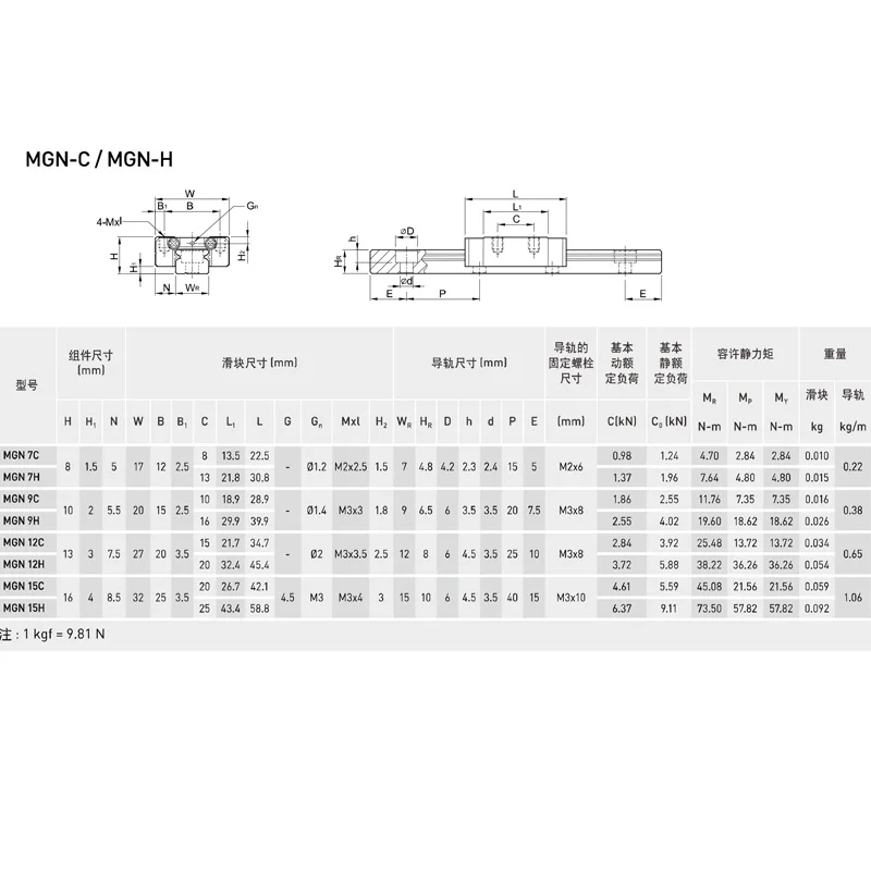 | MGN12C CNC, MGN9H, MGN12H, MGN15H | Différentes tailles disponibles pour s’adapter aux besoins spécifiques de votre projet. |