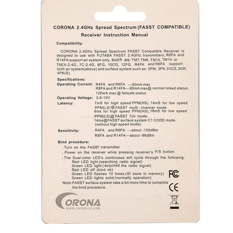 Futaba 2.4GHz FASST Protocole Compatible Récepteur Corona F8FA R14FA 10C 12FG 14SG 16SZ 18SZ RC Avion Fixwing Modèle Récepteur