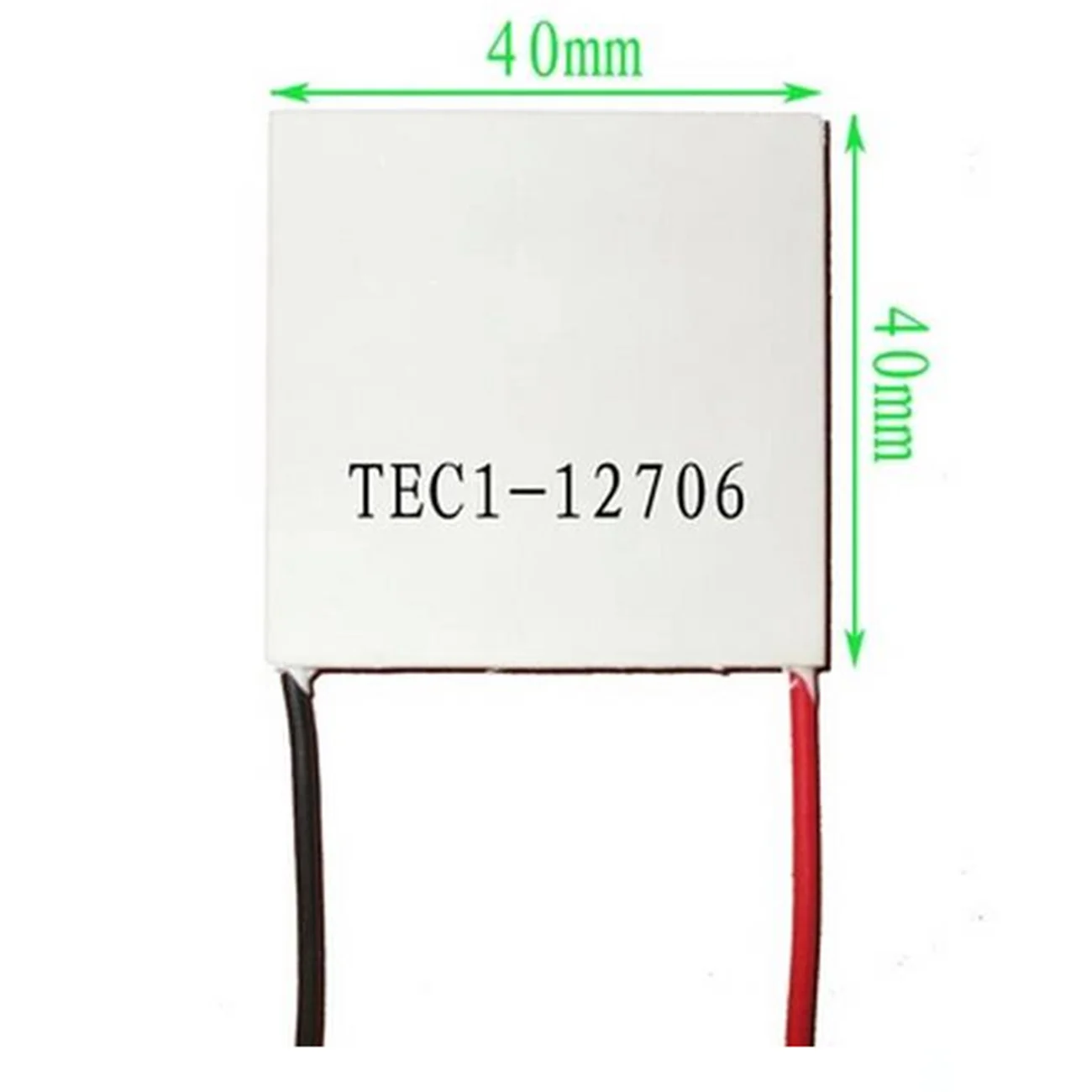 | TEC1-12706 | 40*40*3.75mm | 2.1 ~ 2.4 Ohm | Tmax (Qc = 0) au-dessus de 59 ℃ | 4.3-4,6A | 12V (Vmax: 15V courant de démarrage 5.8A) | 55W | -55℃ ~ 83℃ |