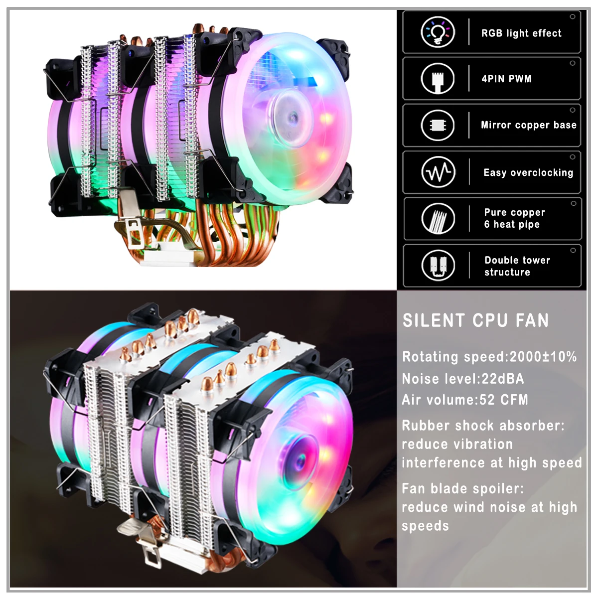 Test et Avis sur le Refroidisseur de processeur x99, 6 tuyaux de chaleur, pour Intel Lga 2011-V3 1700 1151 AM4 AM3 4 broches PWM IWONGOU Hurricane