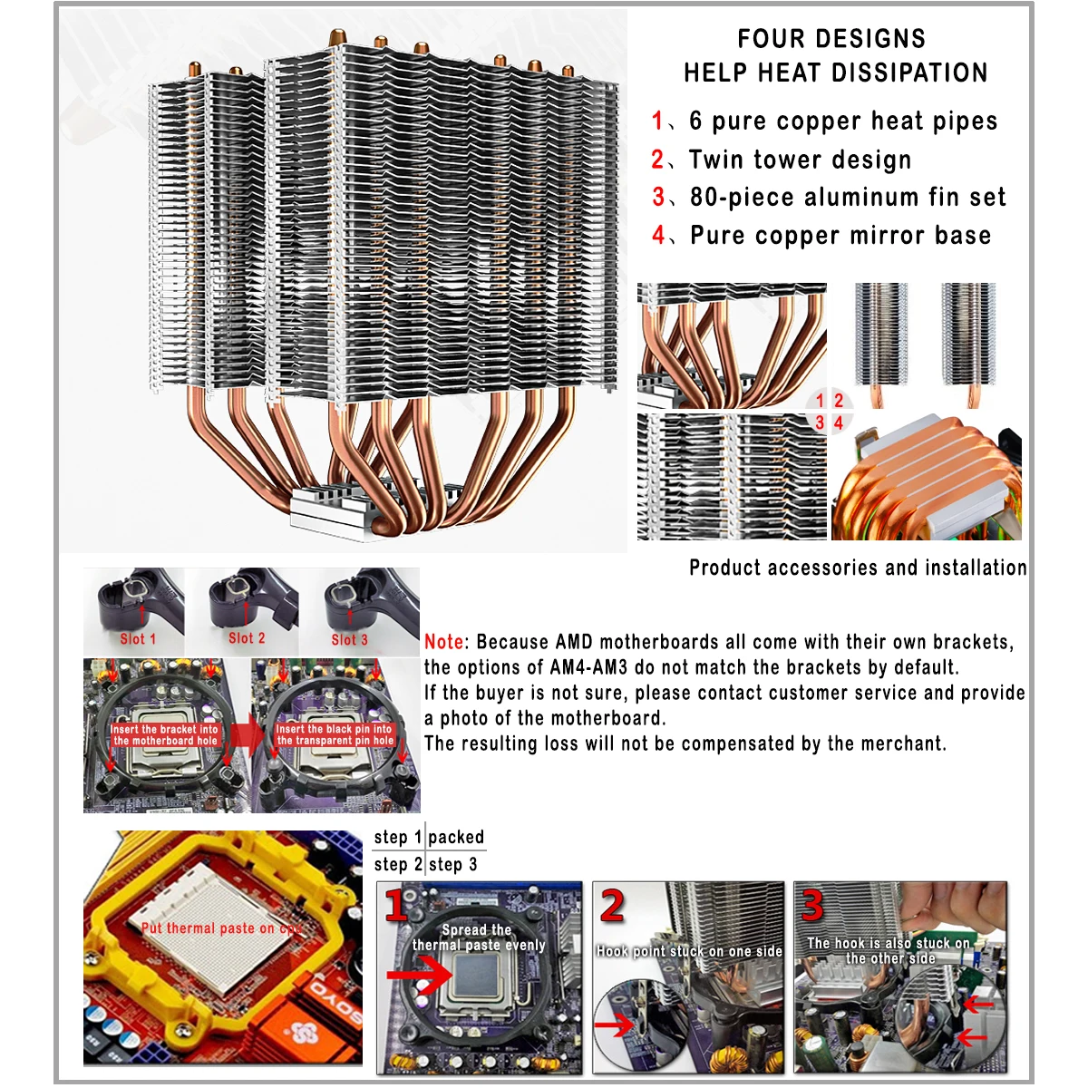 - Spécifications du caloduc: Ø6mm * 6 pièces