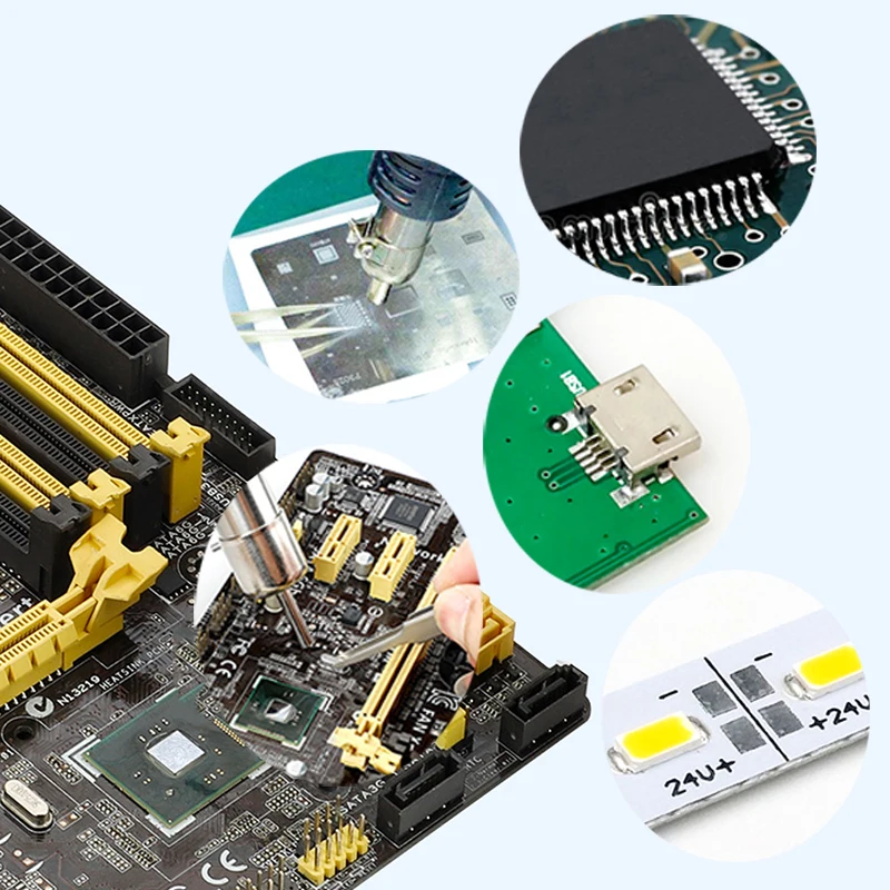 Convient pour le dessoudage, l’entretien et la réparation du flux de plantation de boules GBA. Améliore l’activité et la fluidité de la soudure, aide à l’étamage, élimine la couche d’oxyde des matériaux de soudure et protège les composants contre les dommages causés par les températures élevées pendant le soudage.