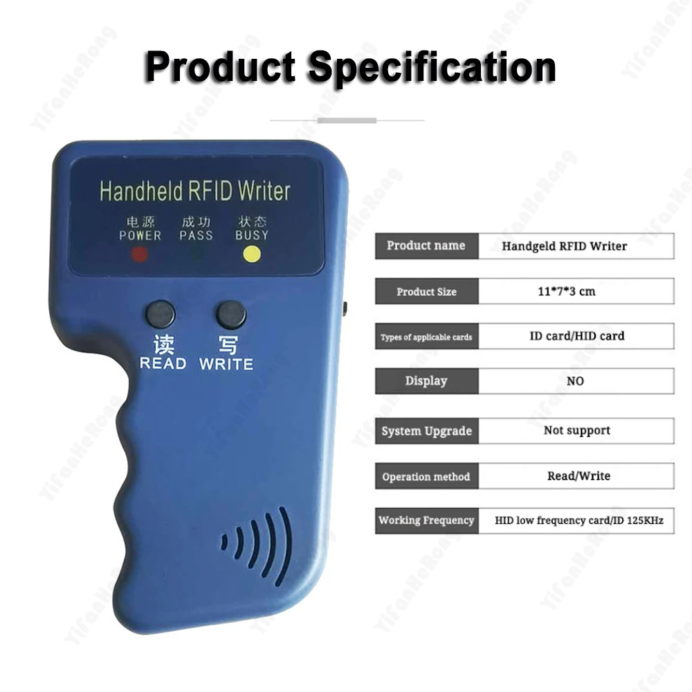 Le réplicateur de carte RFID 125kHz est un duplicateur portable qui peut copier des cartes et des étiquettes RFID 125kHz. Il est petit et facilement transportable.