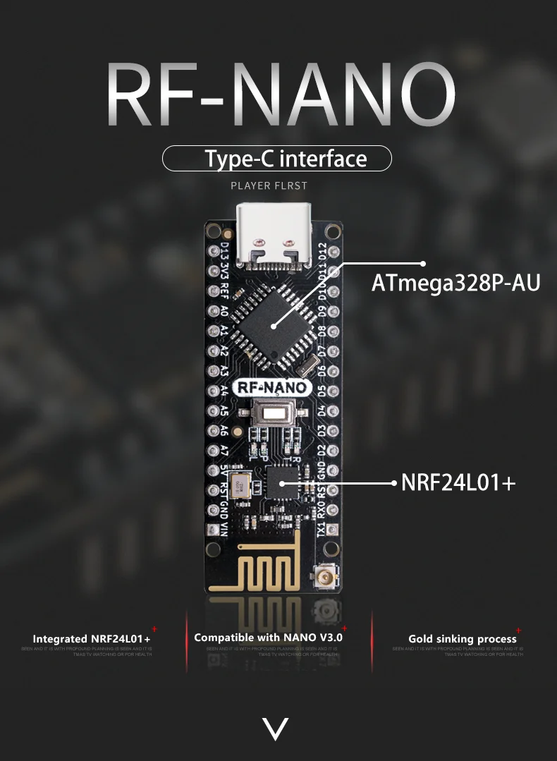 Description du produitRF nano est une carte de développement sans fil 2.4G basée sur la carte Arduino Nano V3.0 et intégrée avec la puce Nrf24L01 +.