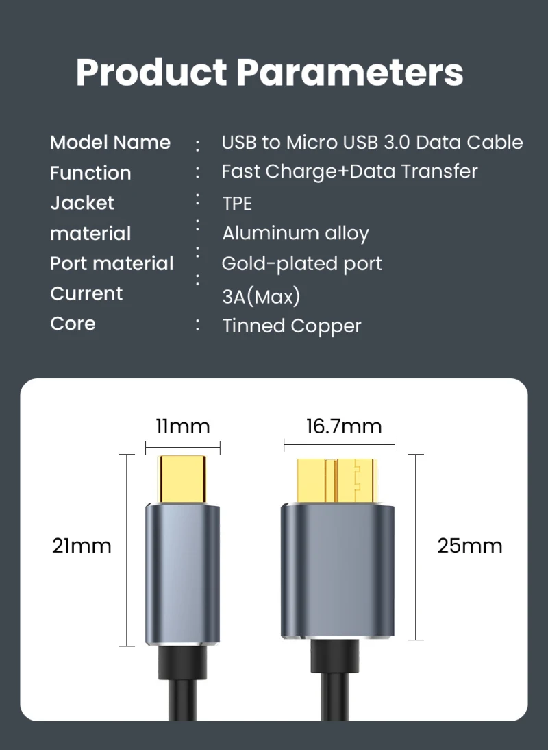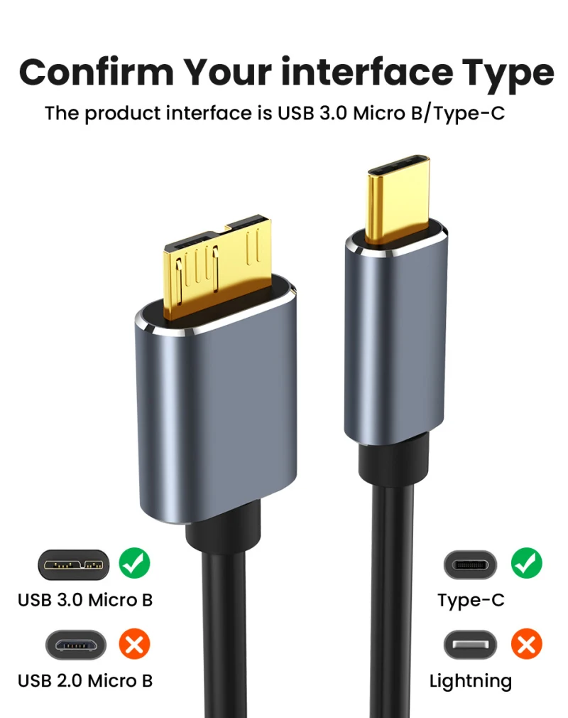 - Nom du produit : TYPE-C USB 3.0 au câble de données de disque dur Micro-B