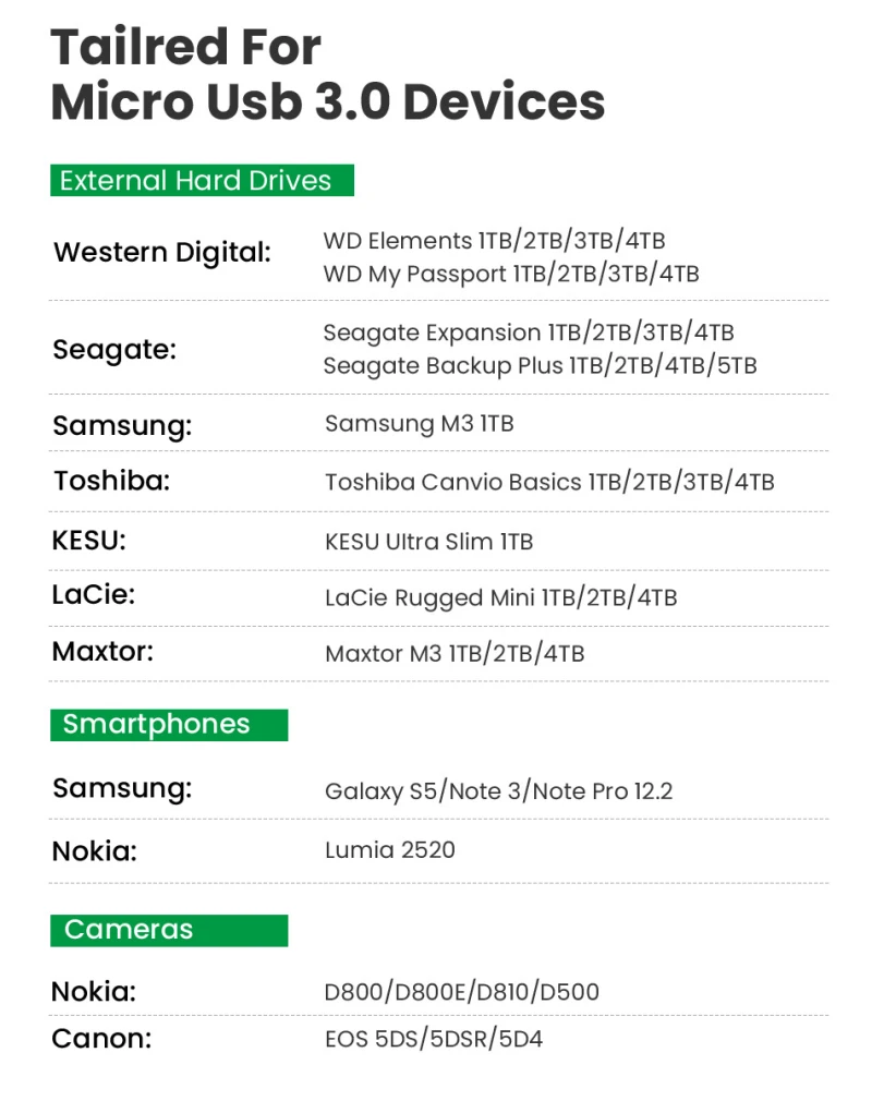 Avant d’entrer dans les détails, voici les points clés du câble USB Type-C vers Micro B 3.0 :