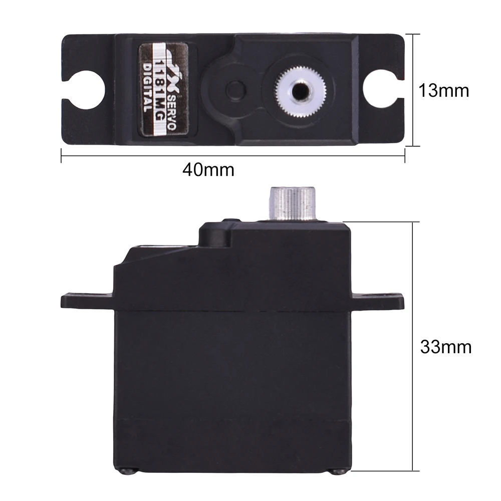 Les dimensions du servomoteur JX PDI-1181MG sont de 40x33x13mm.