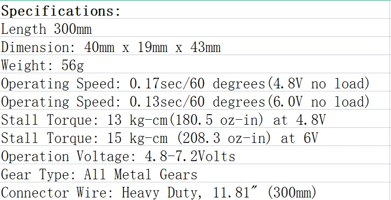 | Conforme à la plupart des connecteurs de récepteur standard: Futaba, Hitec, Sanwa, GWS etc. |