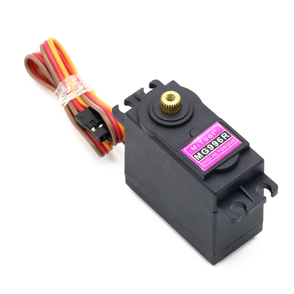 Le servomoteur numérique à couple élevé MG996R est idéal pour une utilisation dans les voitures télécommandées, les hélicoptères, les robots, les bateaux et les projets Arduino. Il est conforme aux connecteurs de récepteur standard tels que Futaba, Hitec, Sanwa, GWS, etc. Son alimentation se fait par un adaptateur externe, ce qui lui confère une performance stable et une résistance aux chocs.