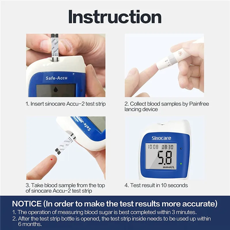 3, La date d’expiration des bandelettes de test de glycémie est de 2 ans, délai d’expiration sous réserve de la date de fabrication sur l’emballage, veuillez noter.