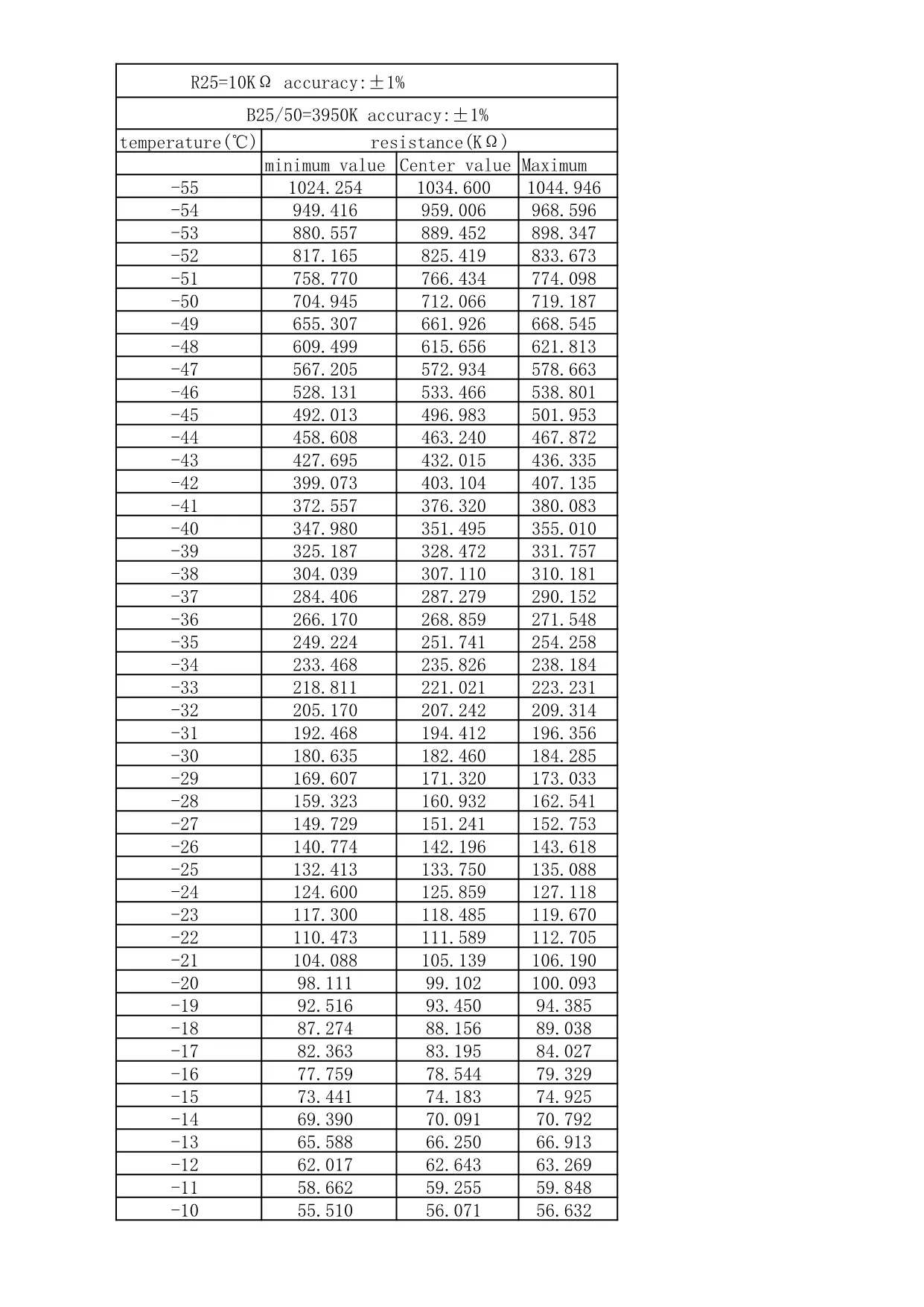 - Précision élevée de la valeur de résistance et de la valeur B, avec une bonne cohérence et interchangeabilité (précision de la valeur de résistance et de la valeur B ± 0.5%)