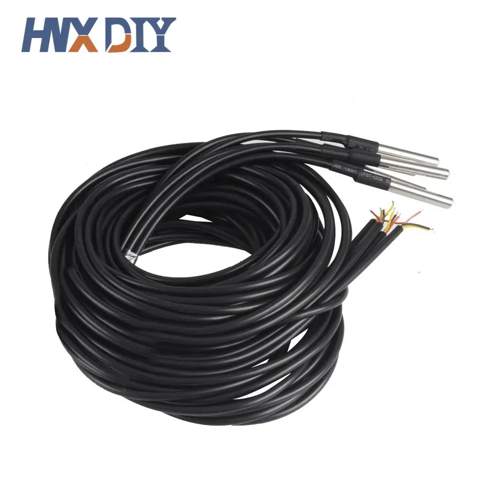 Les capteurs de température numériques étanches DS18B20 sont des composants fiables et précis pour mesurer la température dans diverses applications. Avec une longueur de câble de 10 mètres, ils offrent une grande flexibilité d’installation. Ils sont encapsulés dans un tube en acier inoxydable de haute qualité qui les rend résistants à l’humidité et prévient la rouille.