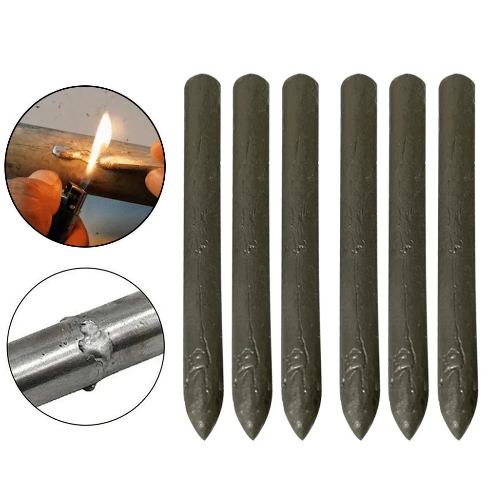 Il suffit de chauffer la soudure avec un briquet coupe-vent, puis de la réparer en l’essuyant avec ces électrodes couvertes.