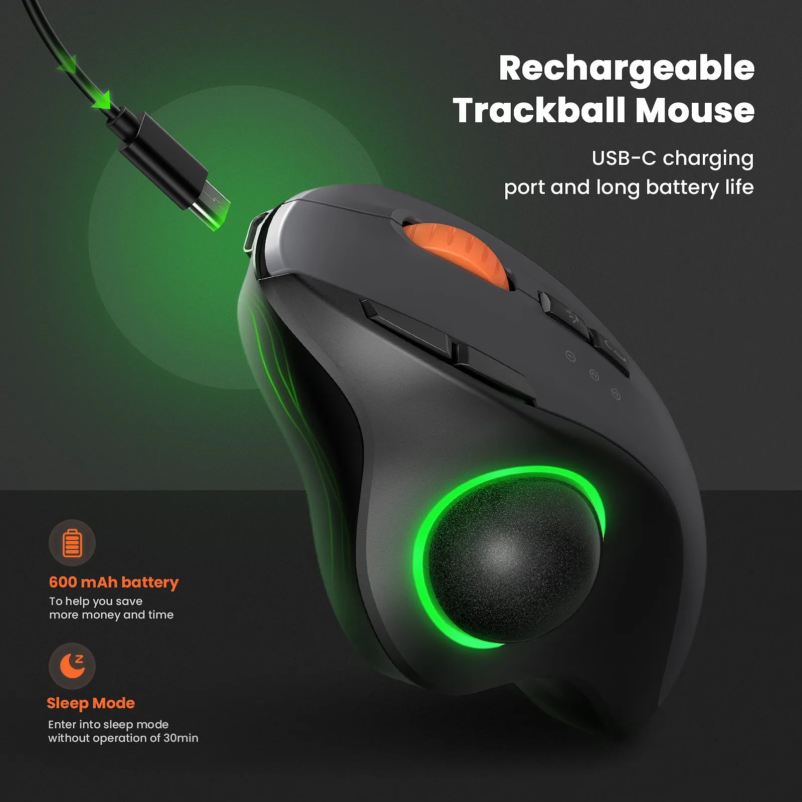 | Souris trackball rechargeable | Port de charge USB-C et longue durée de vie de la batterie |
