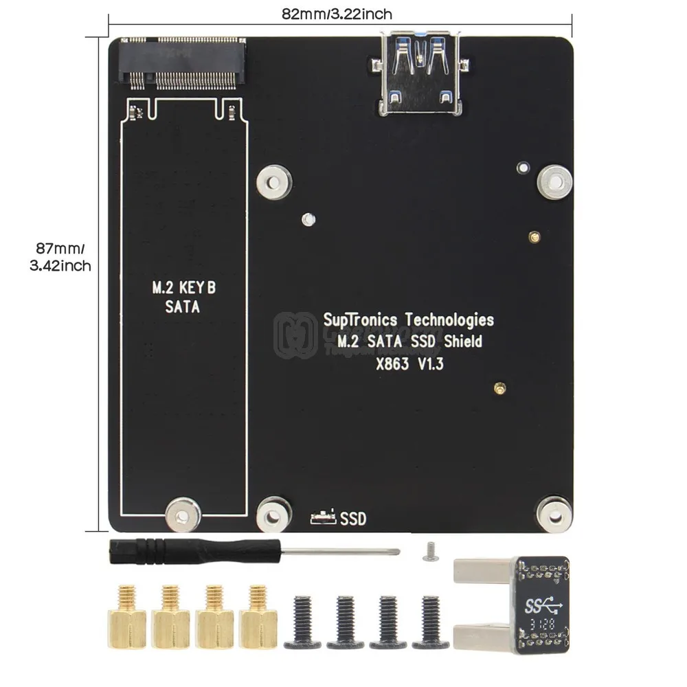 Le X863 est une nouvelle carte d’extension ultra-compacte M.2 NGFF SATA SSD qui offre une solution de stockage facile et rapide pour votre Raspberry Pi 4 modèle B. Il prend en charge uniquement les SSD M.2 NGFF Key-B de longueur 2280 et offre une prise en charge UASP pour une meilleure performance. Le X863 peut être utilisé comme solution de stockage pour votre centre multimédia domestique et pour le stockage en réseau (NAS) afin de stocker et diffuser vos propres vidéos, musique et photos numériques chez vous et partout dans le monde.