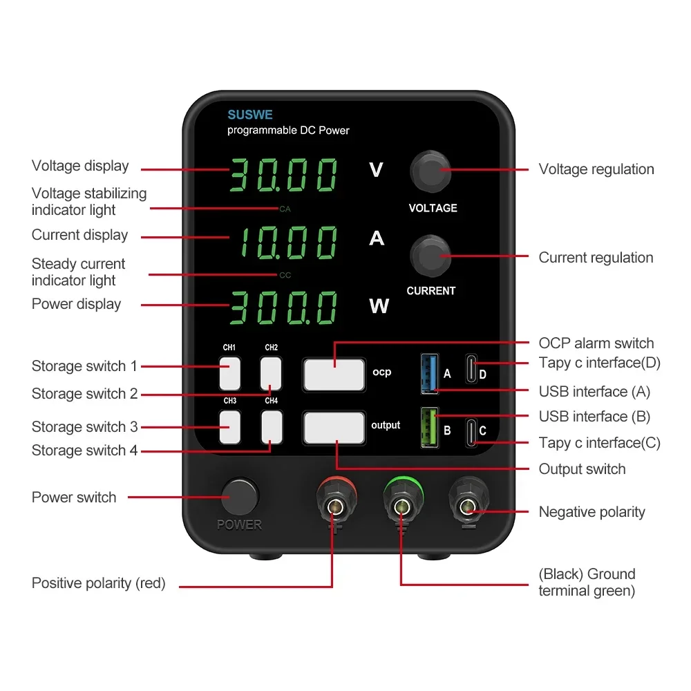 1. Alimentation DC programmable SU3010 avec affichage de puissance 30V10A