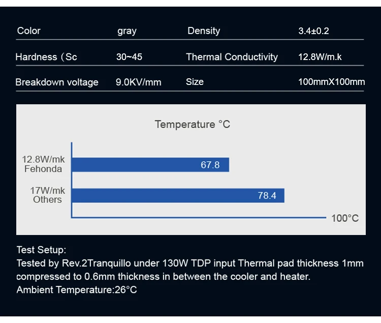 Le coussin thermique Fehonda est un produit de haute qualité qui offre une conductivité thermique exceptionnelle. Avec une puissance nominale de 12.8W, il assure un transfert de chaleur efficace, permettant de résoudre les problèmes de surchauffe. De plus, ce coussin thermique est fiable et durable, conçu pour les périphériques GPU/CPU/Overclock. Il est disponible en différentes options d’épaisseur, ce qui le rend compatible avec 99% des appareils du marché. En l’adoptant, vous améliorerez votre gestion thermique et profiterez de performances et d’une longévité améliorées.