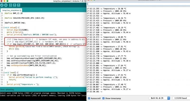 | Connexion | BMP390 VIN 5V GND GND SCL 13 SDO 12 SDA 11 CS 10 |