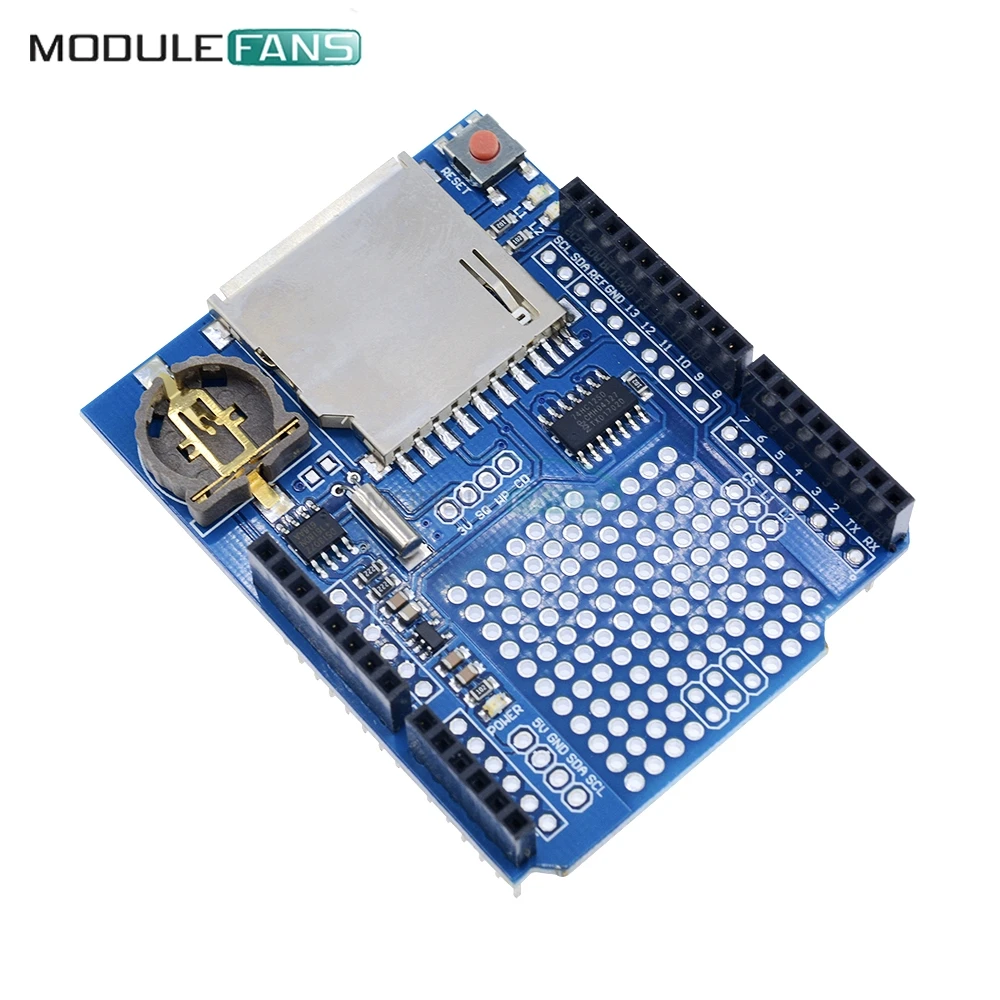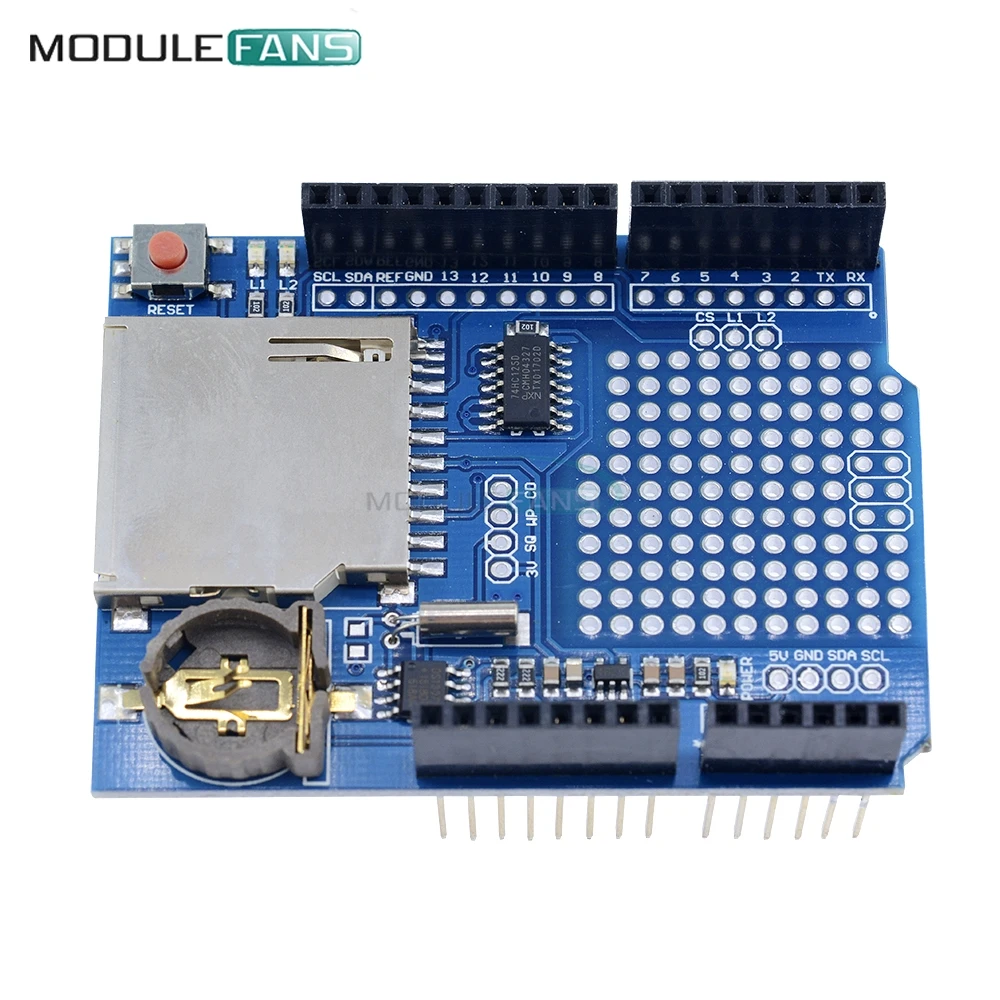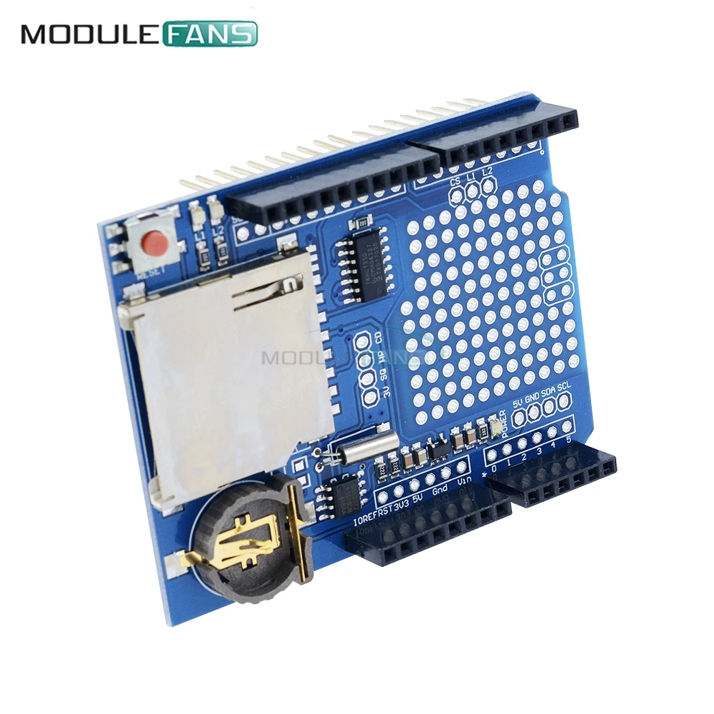 Le circuit de décalage de niveau 3.3v inclus dans ce bouclier protège votre carte SD contre les dommages et assure un fonctionnement fiable. De plus, l’horloge temps réel (RTC) avec batterie de secours intégrée maintient le temps en cours pendant des années, même en cas de coupure de courant.