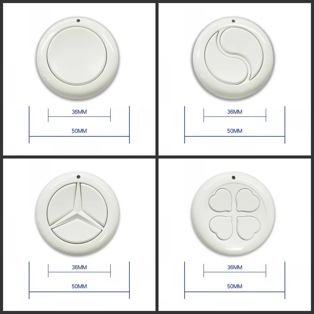 La télécommande ronde 315 433 MHz 1527 est un émetteur sans fil avec un design adhésif pour un montage mural. Ce bouton émetteur a une forme ronde et est compatible avec les récepteurs de code d’apprentissage qui ont un bouton d’apprentissage. Veuillez noter que cet émetteur fonctionne uniquement avec un récepteur et que le récepteur doit être de la fréquence de 315MHz ou 433MHz. Il fonctionne avec la plupart des récepteurs et est compatible avec l’émetteur à puce 1527 ic.