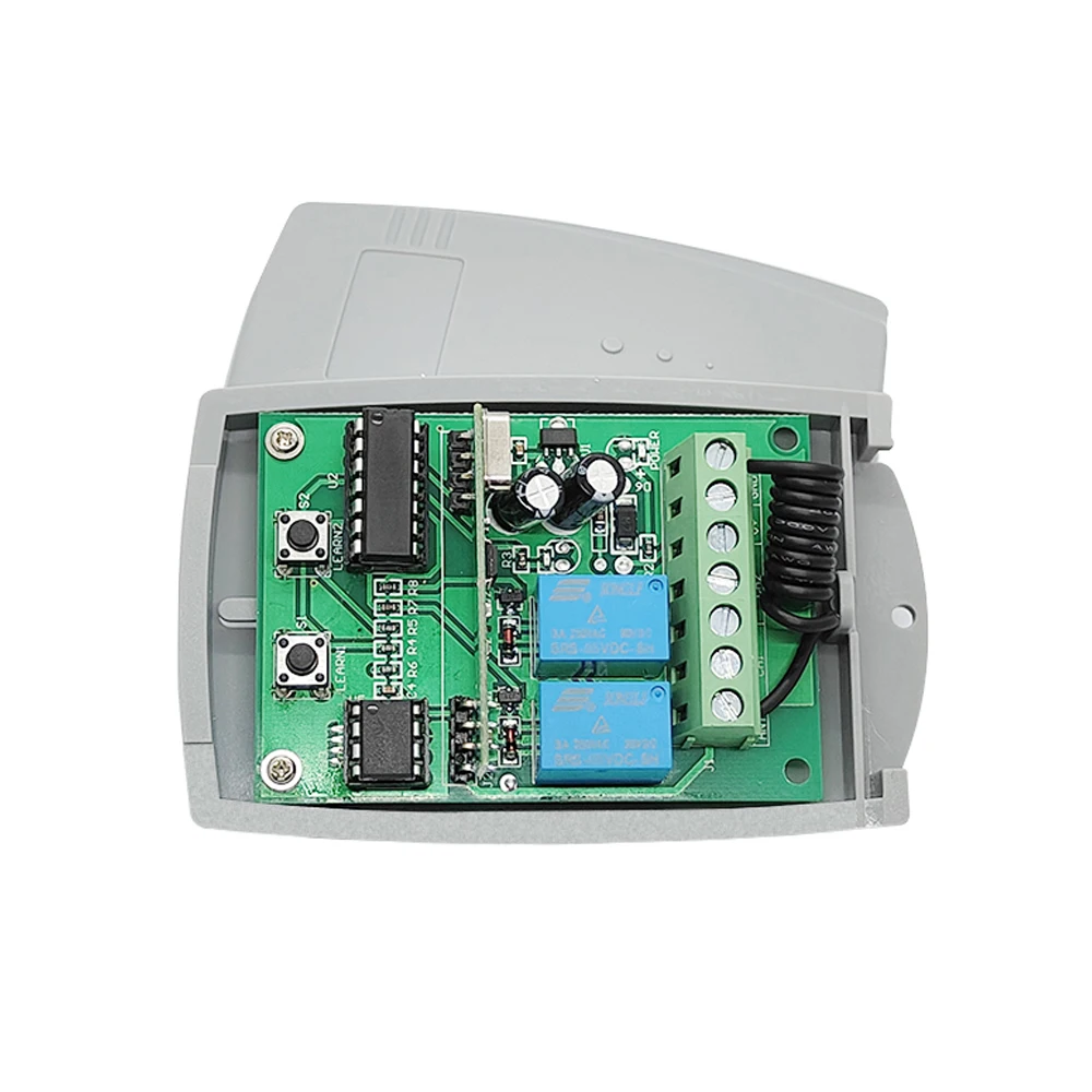 Le produit est un récepteur intelligent général et il peut être assorti à la majorité des récepteurs sans fil sur le marché, y compris le code fixe (2262, 2260,2264,5326,M1E,M5E, etc.), code d’apprentissage (1527, 2240, 6P20B, 6P20D etc). Roling code (HCS301,HCS300,HCS200,HCS201,HSC100,HCS1O1 etc) et une partie de la télécommande personnalisée.