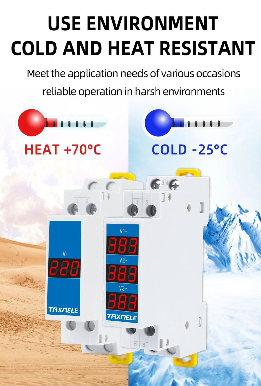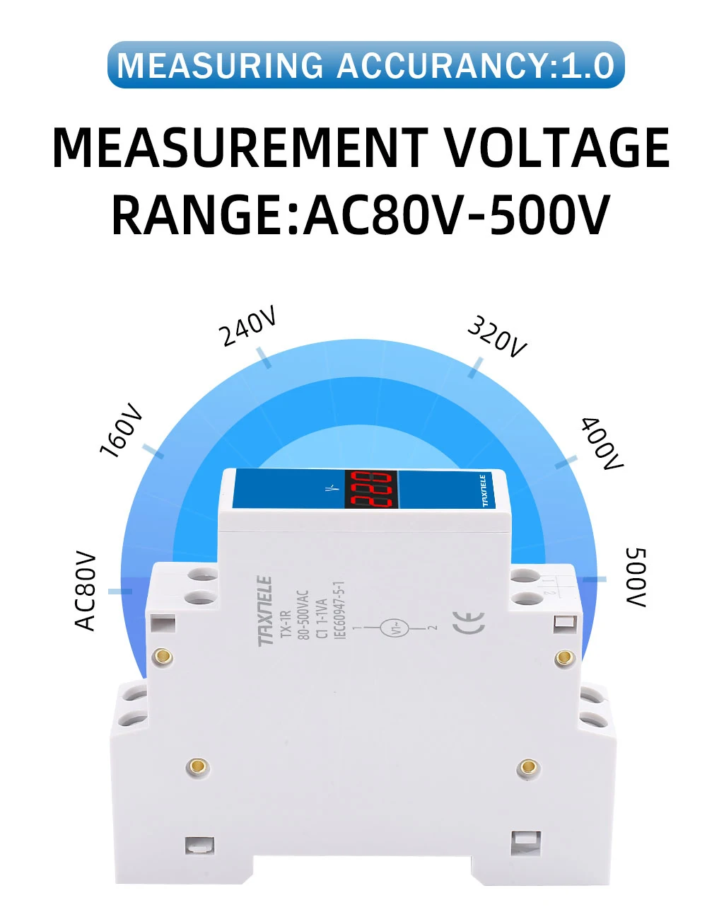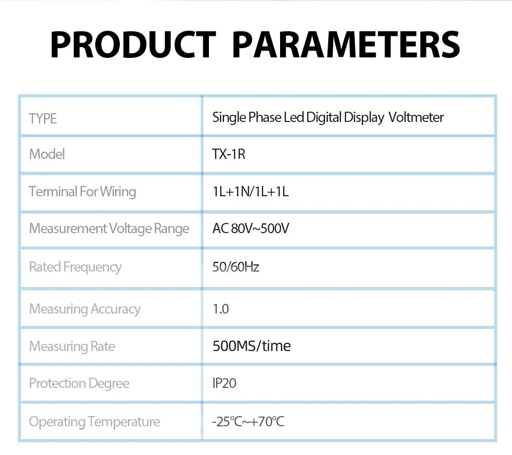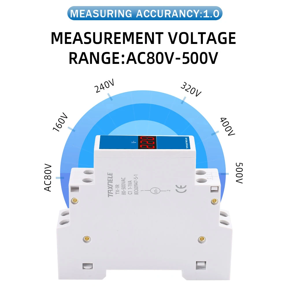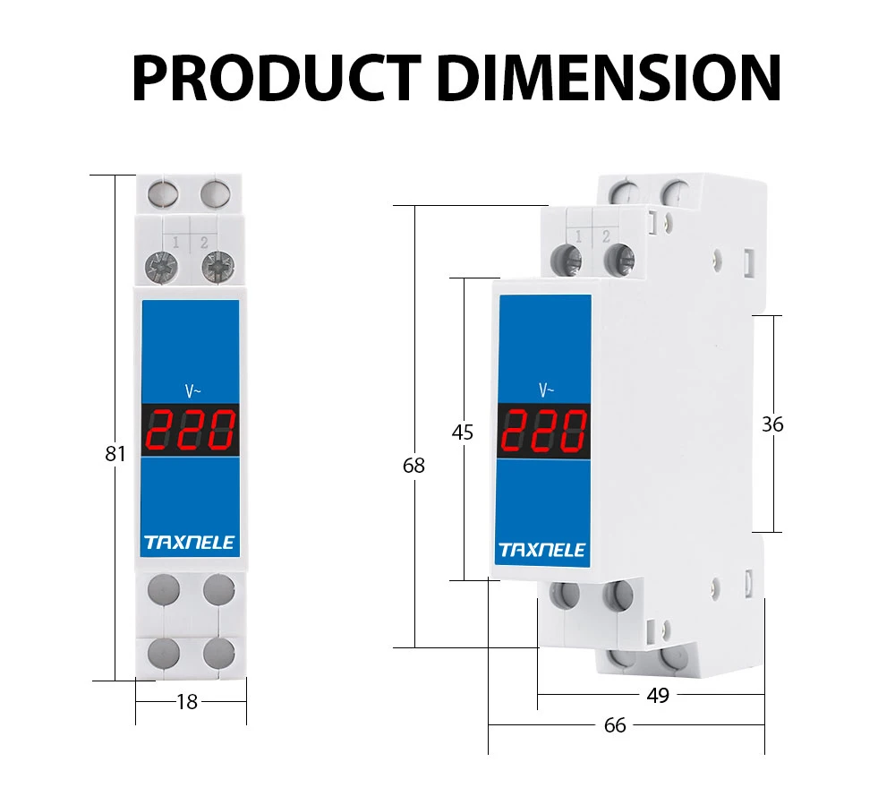 Voici les points importants à retenir du compteur de tension modulaire à rail DIN, indicateur de voltmètre monophasé, détecteur à affichage numérique LED :