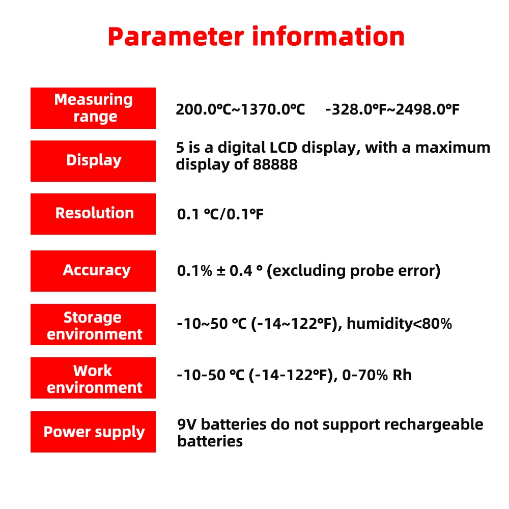 | Plage de mesure | -200 °C ~ 1370 °C |