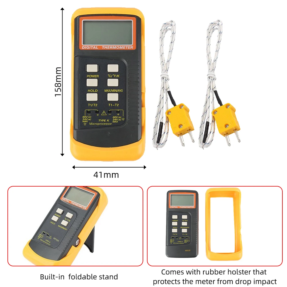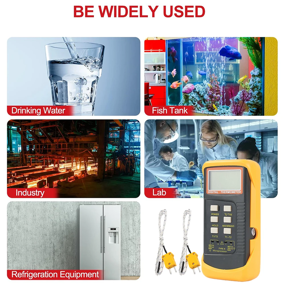 Therye.com – Thermocouple professionnel numérique LCD à 2 canaux est un produit de haute qualité offrant des fonctionnalités avancées pour la mesure de la température. Sa précision, sa vitesse d’échantillonnage rapide et sa capacité de maintien des données en font un outil fiable pour les professionnels de divers domaines tels que la cuisine, l’industrie, la recherche, etc. De plus, sa compatibilité avec les sondes de type K en fait un choix polyvalent pour diverses applications.