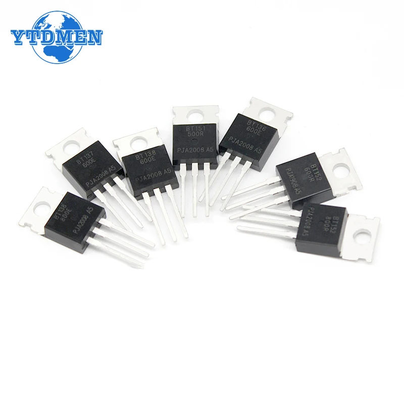 - Tension: 600V (BT136-600E, BT137-600E, BT138-600E, BT138-800E, BT152-600R), 800V (BT151-500R, BTA06-600C)