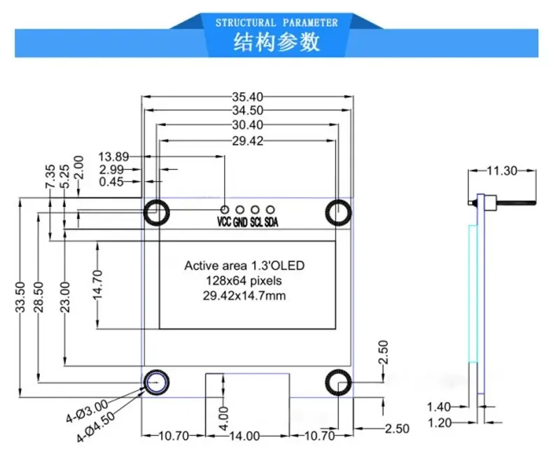 Le module d’écran LCD OLED de 1,3 pouces avec une résolution de 128×64 est un écran OLED blanc/bleu. Il est équipé d’une puce de contrôle SH1106 et offre une interface IIC. La taille de l’écran est de 29,42 x 14,7 mm avec une taille de PCB de 35,4×33,5 mm. Il fonctionne avec une tension de 3,3 à 5 volts et il affiche les couleurs blanc ou bleu. Cet écran est idéal pour afficher des informations sur des petits appareils électroniques.