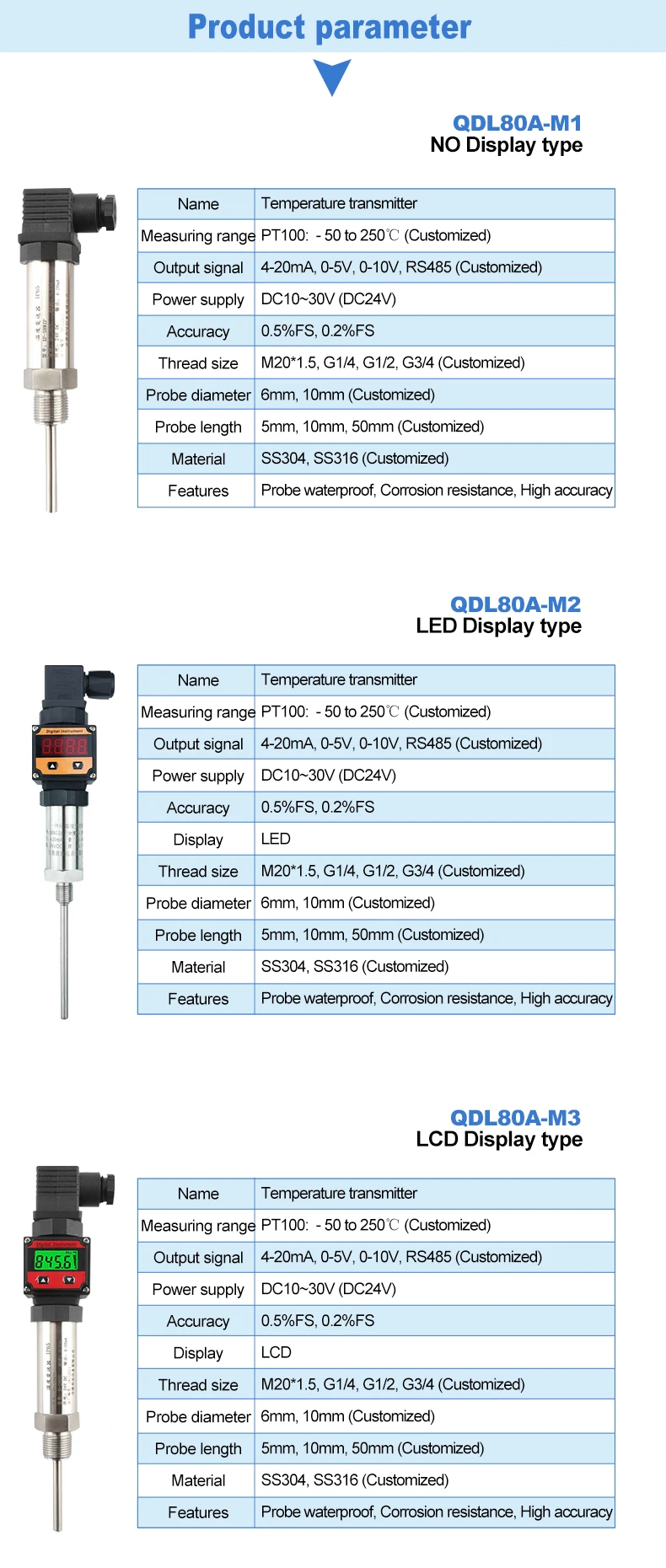 Globalement, ce transmetteur de capteur de température intégré QDL80A offre une précision et une fiabilité supérieures pour mesurer la température dans diverses applications industrielles.