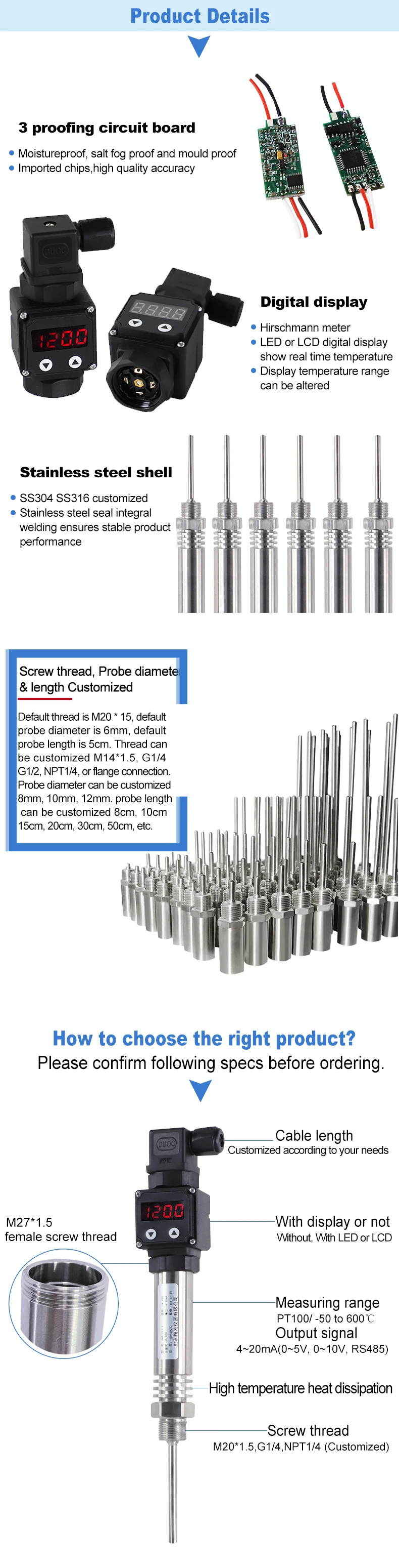 | Longueur de la sonde | 50mm, 100mm, 150mm peuvent être personnalisés |