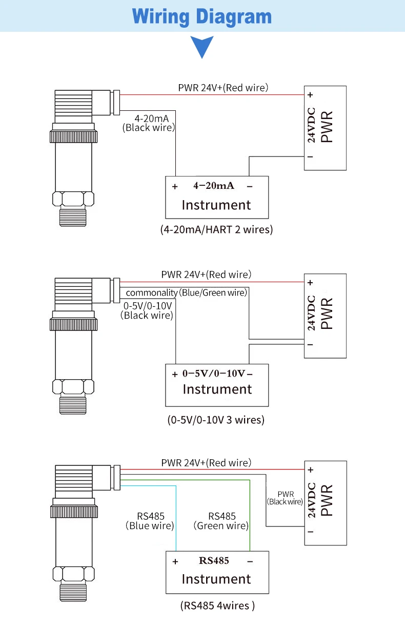 Le thermocouple (résistance) mesure les changements de puissance thermique (résistance) lors du travail, ce qui produira un signal de déséquilibre à travers le pont du transducteur de température, et le signal sera amplifié et converti en signal CC 4-20mA à l’instrument, puis l’instrument affichera la valeur de température correspondante.