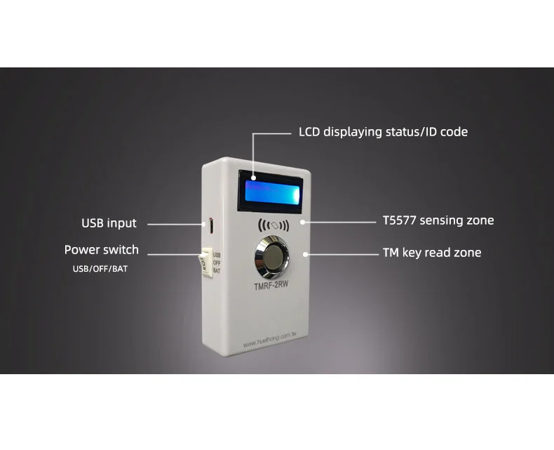 TMRF-2RW programmeur iButton est un copieur qui supporte plusieurs modèles de cartes RFID. Il peut lire et écrire les modèles DS1990, TM1990, et RW1990. Il peut également lire et écrire les cartes TK4100 et T5577 à une fréquence de 125KHz.