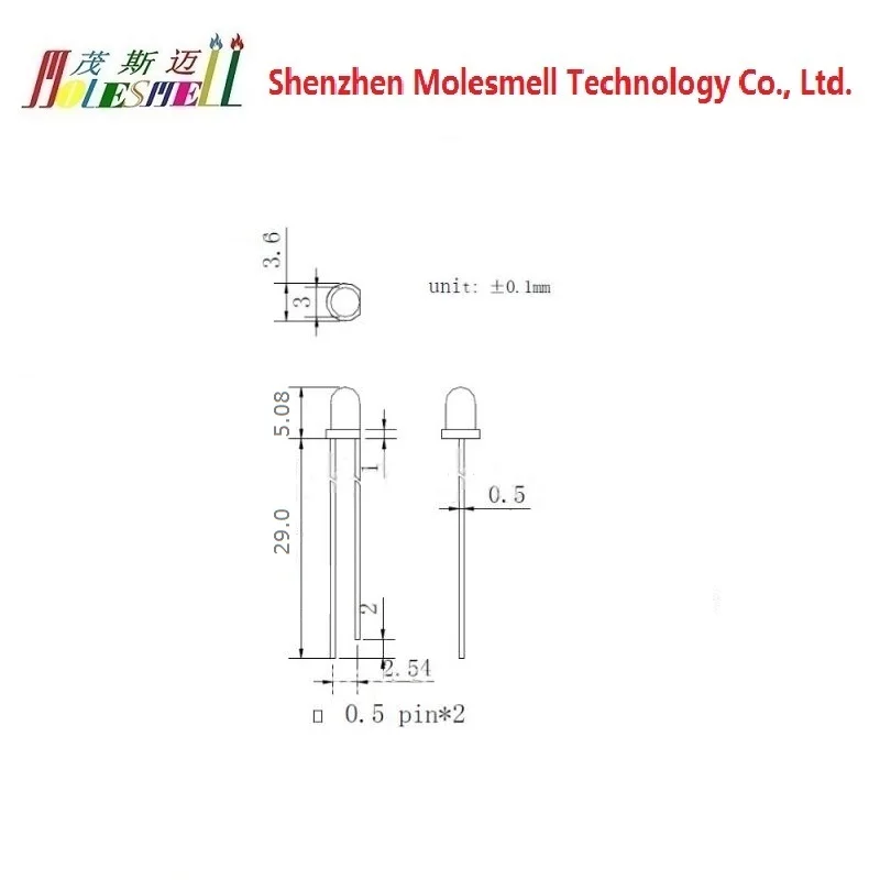 - Tension de 2.0-2.2 V pour les couleurs rouge, jaune et vert clair, et de 3.0-3.4v pour les couleurs bleu et vert jade