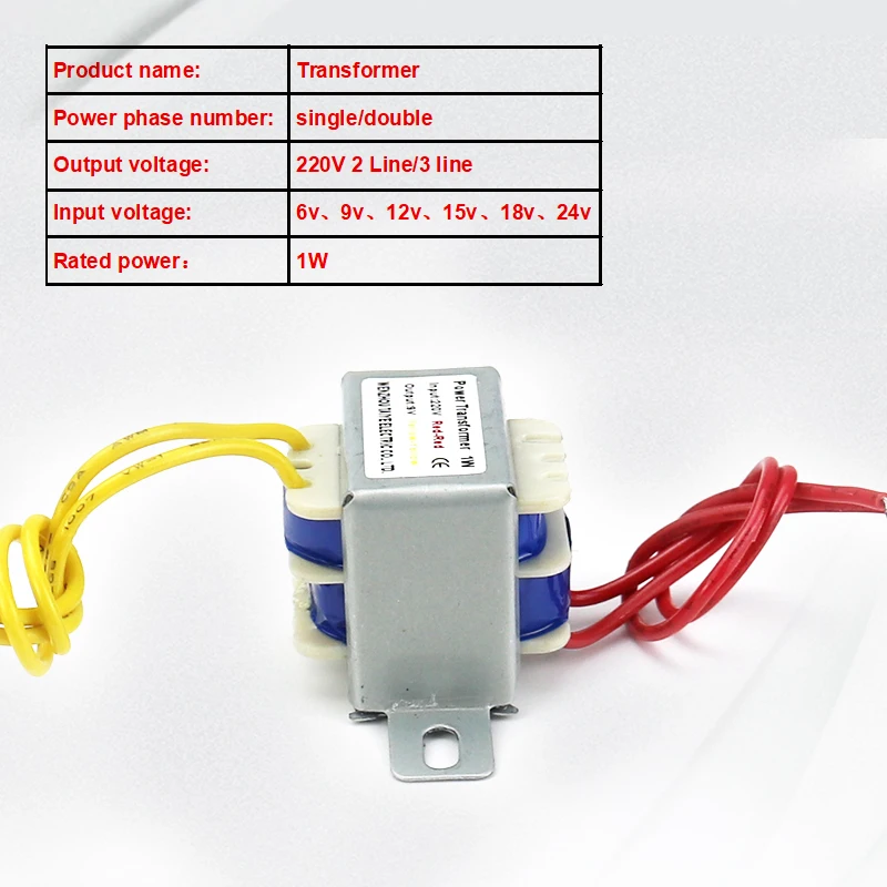 Transformateur à alimentation AC 6V, 12V, 9V, 12V, 15V, 24V, 1W, noyau en cuivre EI, entrée 220V, 50 ~ 60Hz, simple ou double volt