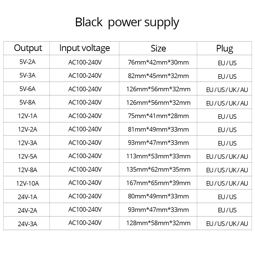 - Sortie à tension constante, supposez une alimentation stable pour que les éclairages LED atteignent une longue durée de vie
