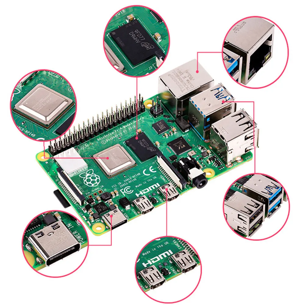 • Broadcom BCM2711, Cortex-A72 à quatre cœurs (ARM v8) SoC 64 bits à 1.5GHz