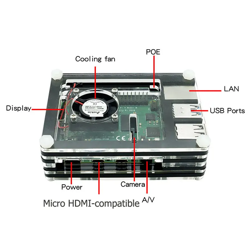 • 1 x Raspberry Pi 4 Modèle B (en option RAM 1GB, 2GB, 4GB ou 8GB)