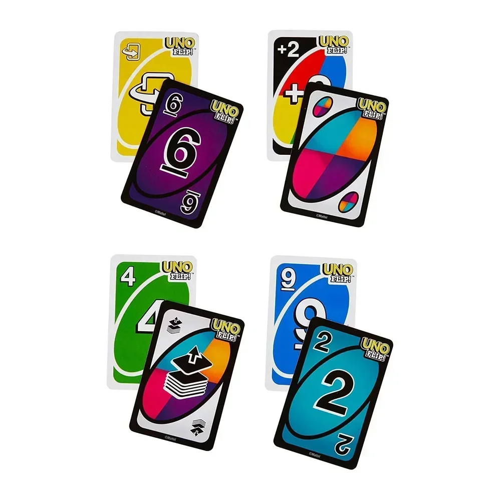 Le UNO DOS FLIP! est un jeu de cartes facile à ramasser et impossible à poser. Il ne faut que quelques minutes pour apprendre les règles, ce qui en fait un jeu familial idéal. Les joueurs doivent coordonner les couleurs (rouge, vert, bleu et jaune) et les chiffres pour gagner.