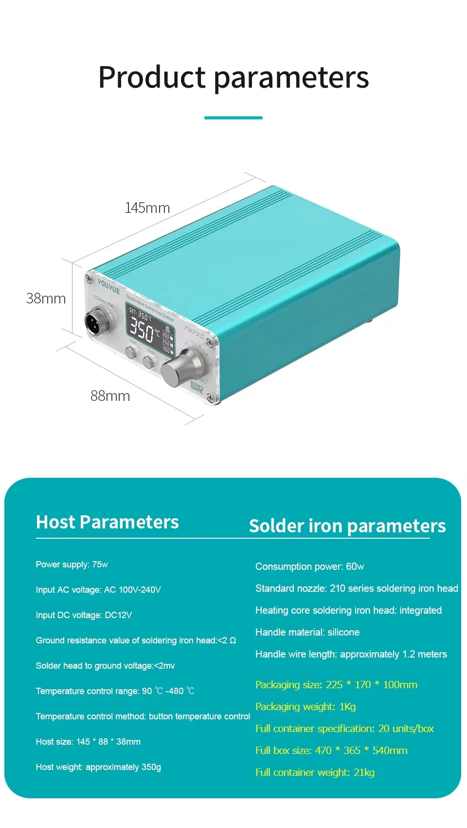 Cependant, la taille de l’hôte de 145*88*38mm peut être un inconvénient si vous avez besoin d’un outil plus compact. De plus, la température maximale de 480°C peut être limitée pour certaines applications de soudage spécifiques.