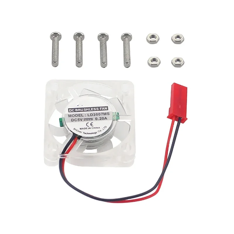 Le ventilateur mesure 30mm x 30mm x 7.5mm (LxLxH) et est livré avec un fil de 2.6 pouces (66mm). Il dispose d’un connecteur à deux broches et est disponible en couleur noir ou clair. Il fonctionne sous une tension de 3.3V à 5V.
