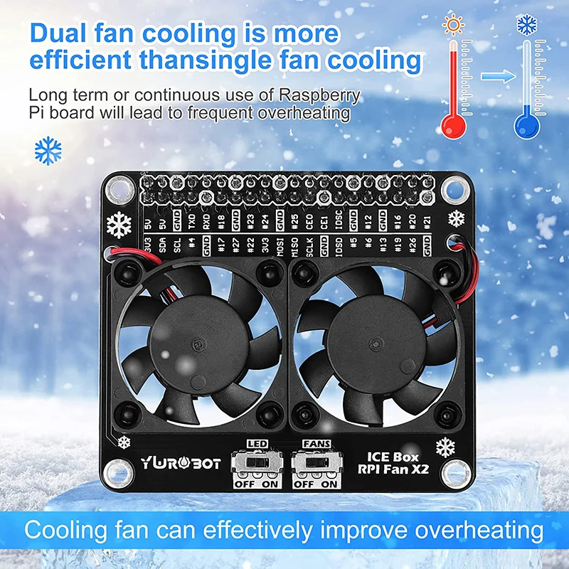 Chapeau de ventilateur de refroidissement Raspberry Pi avec carte d’extension GPIO LED à décoloration automatique