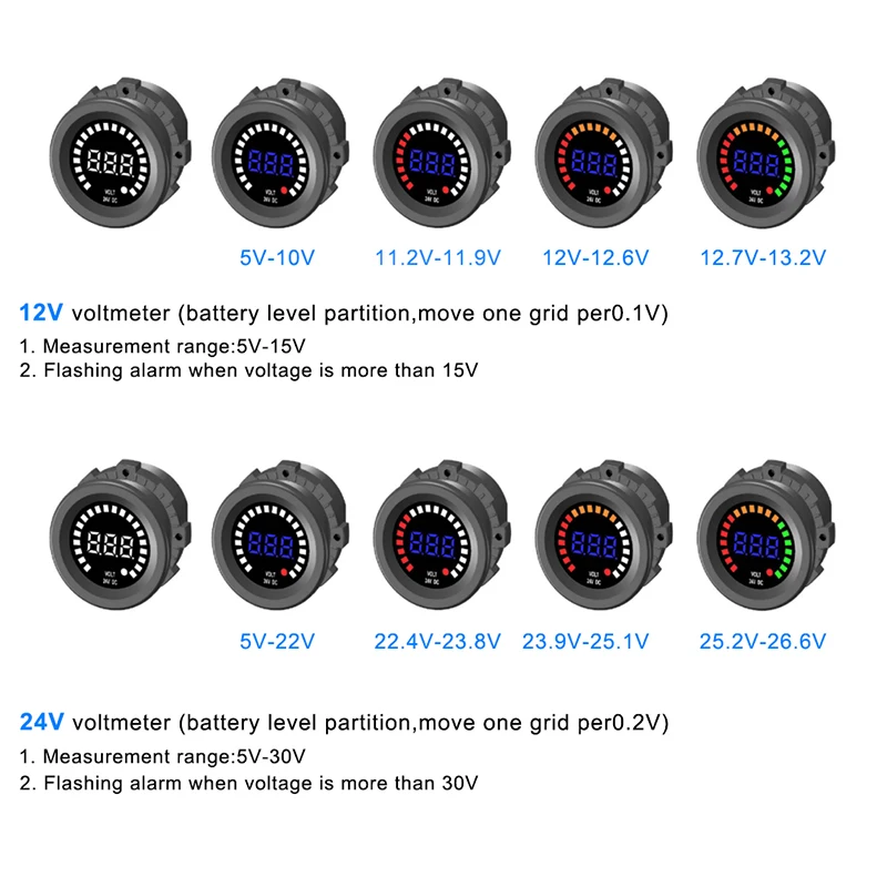 Numérique 12v 24v Bateau Moto Voiture Voltmètre Jauge