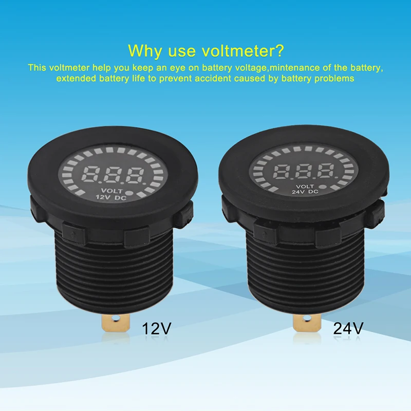 - Voltmètre numérique à LED adapté aux voitures, motos et bateaux