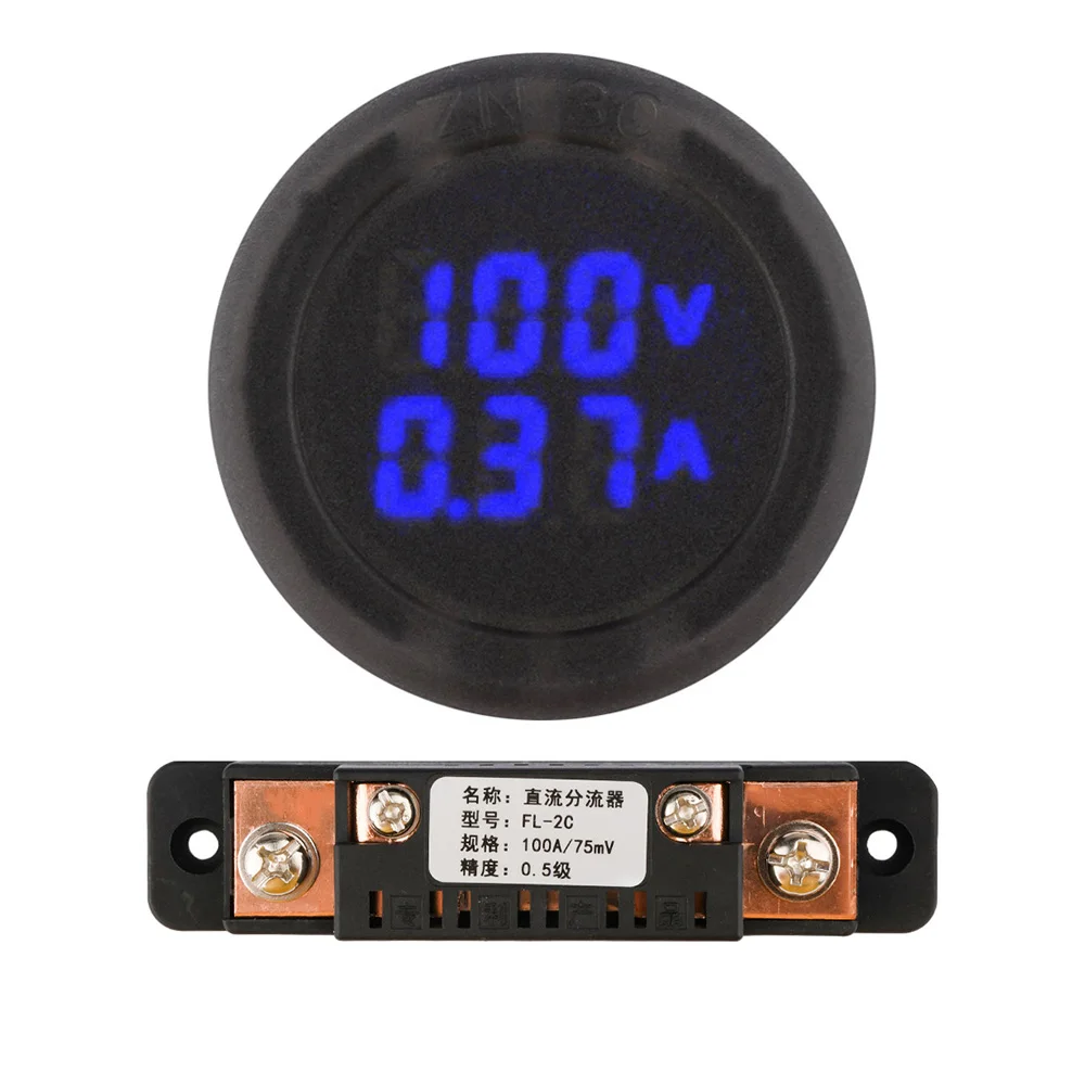 1 x Voltmètre rond à affichage numérique LED DC 5-100V 100A 50A 10A