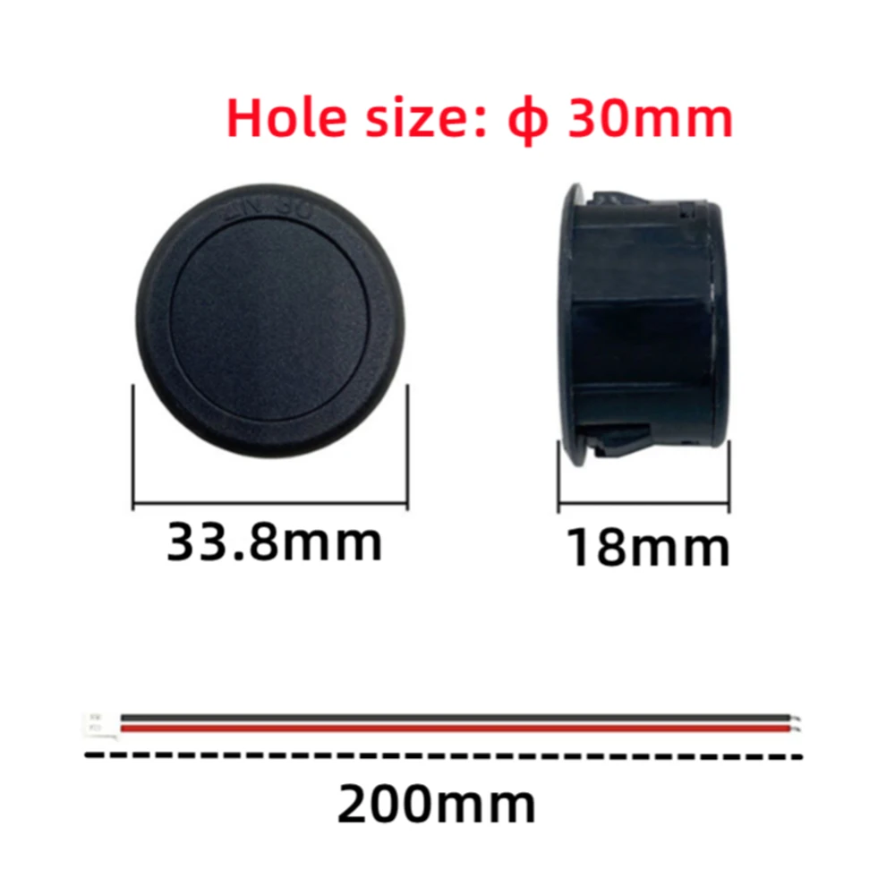 Le Voltmètre rond à affichage numérique LED a un diamètre total de 33,8mm et une taille d’ouverture de 30,3mm.