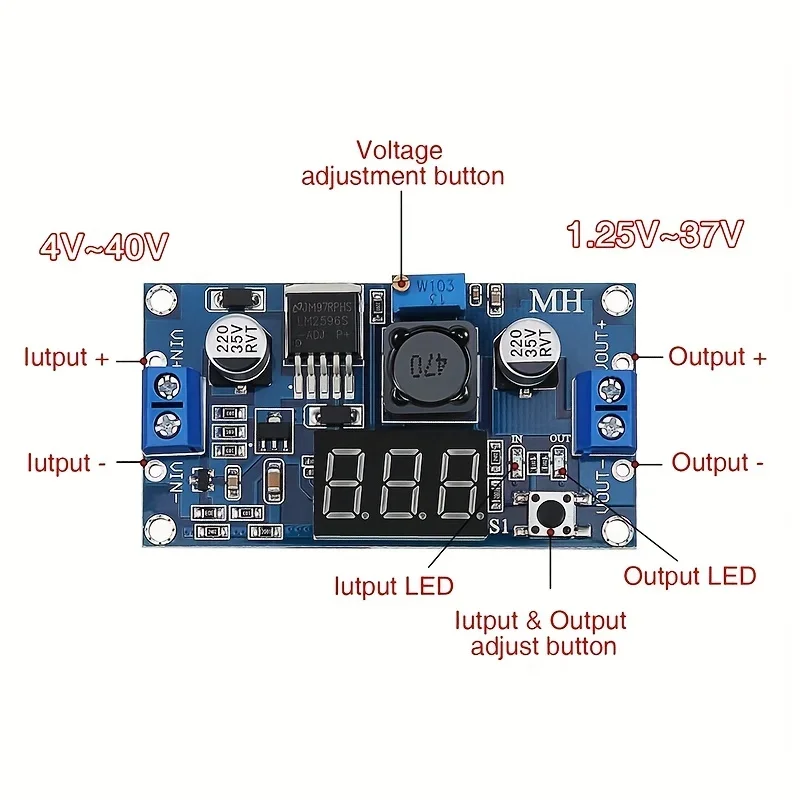 - Tension de sortie réglable de 1.3 ~ 37V