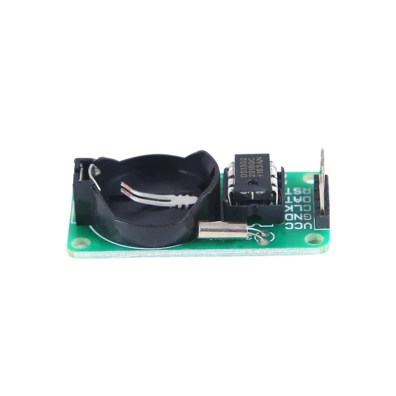 L’horloge RTC DS1302 est une puce d’horloge de charge d’entretien de DALLAS qui contient une horloge/calendrier en temps réel et 31 octets de RAM statique pour communiquer avec le microcontrôleur via une simple interface série. Le circuit d’horloge/calendrier en temps réel fournit des informations sur les secondes, les minutes, les heures, les jours, les semaines, les mois et les années. Il peut ajuster automatiquement le nombre de jours par mois et le nombre de jours de l’année bissextile. L’horloge peut fonctionner en format 24 heures ou 12 heures avec indication AM/PM. Sa consommation d’énergie est très faible, ce qui permet de maintenir les données et les informations d’horloge même lorsque la puissance est inférieure à 1mW.